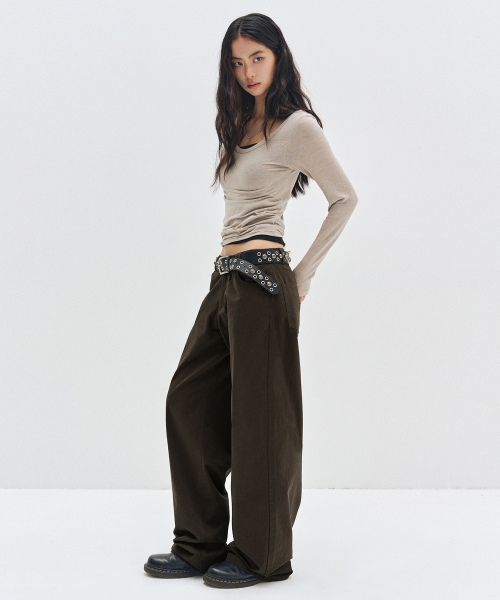 언발 컷팅 셔링 스트랩 사선 레이어드 롱슬리브리스 세트_2COLOR