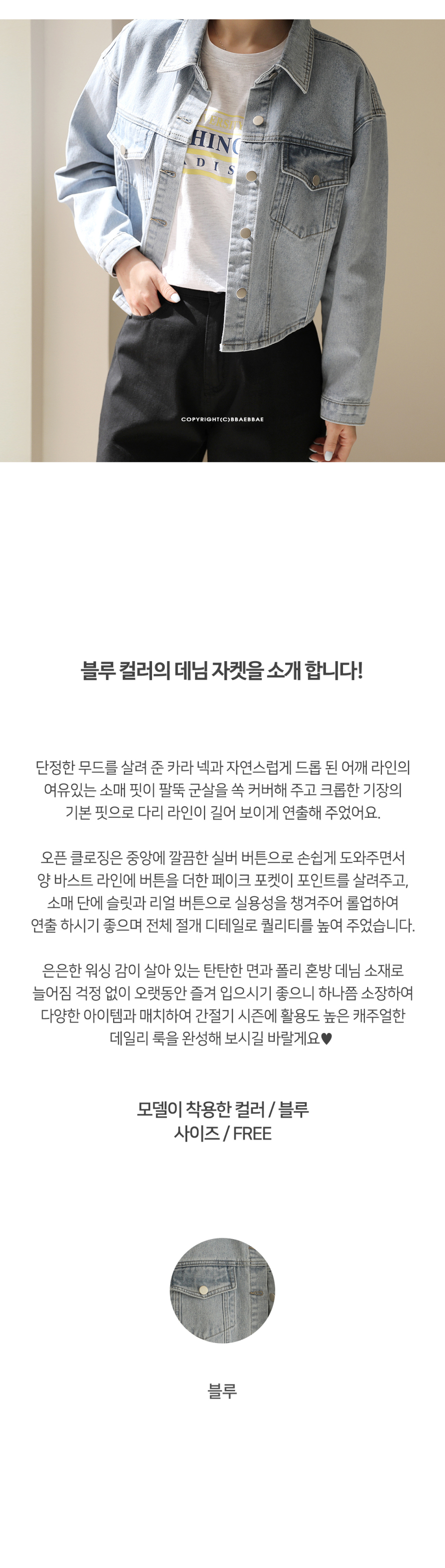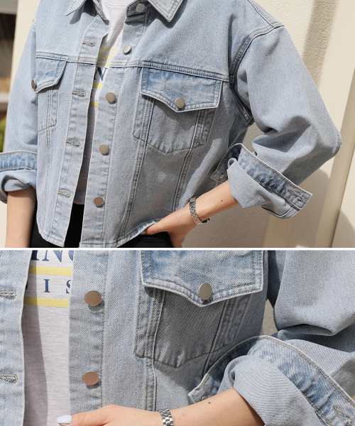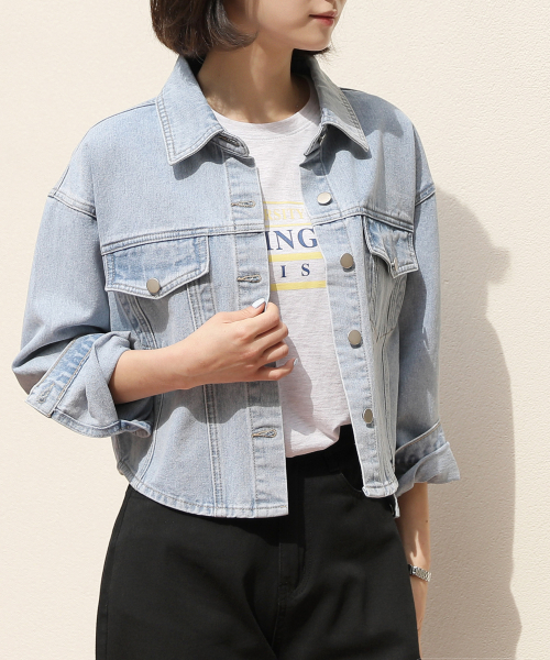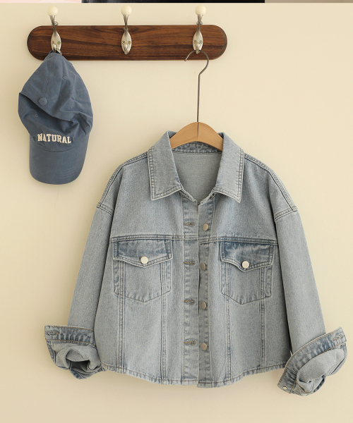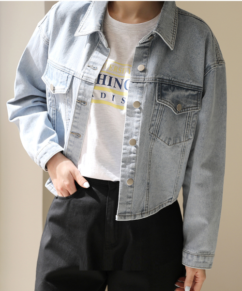 라이트워싱 캐주얼 크롭 데님 자켓