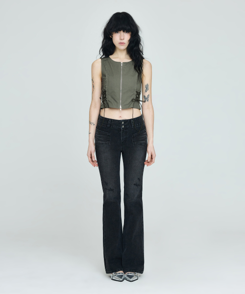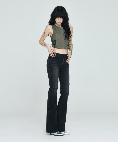 골반볼륨업 중진청 절개 와이드 부츠컷_골반뽕 청바지