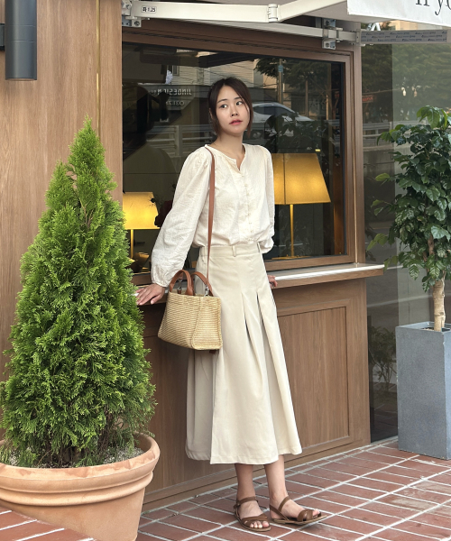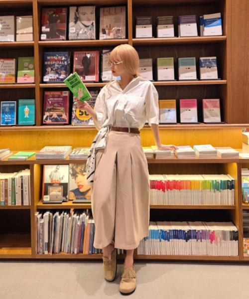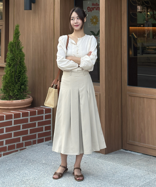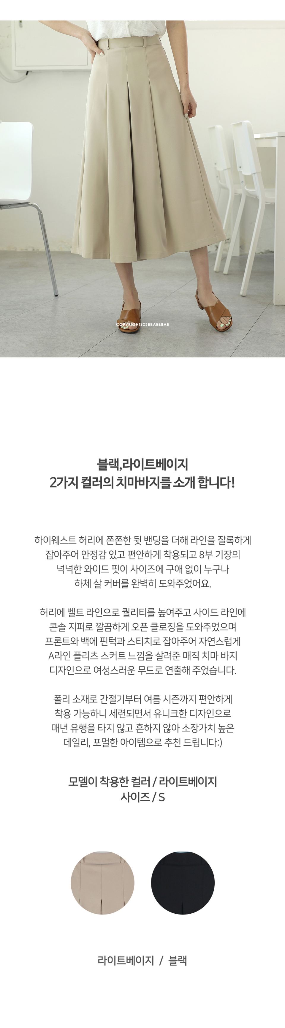 뒷밴딩 시크릿 플리츠 7부 치마바지
