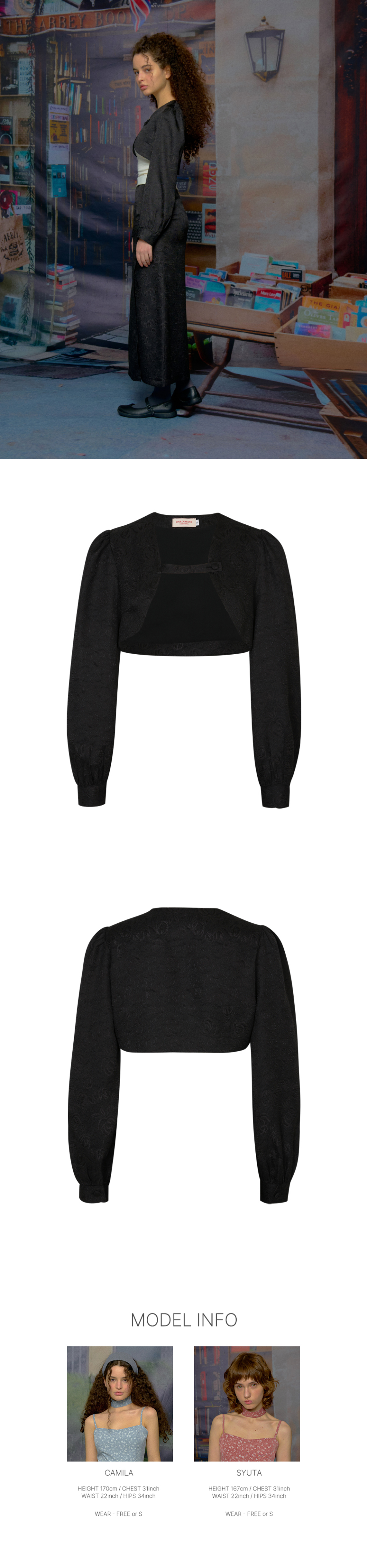 입체감이 느껴지는 자가드 플라워 패턴의 셋업 볼레로를 소개합니다.