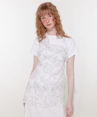 비조여밈. 어깨 셔링 포인트. 자가드 플라워 패턴.
