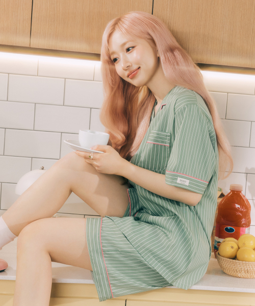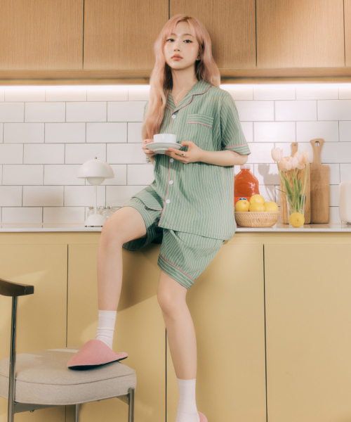 실크핏 웬즈데이 반팔 커플 잠옷 세트
