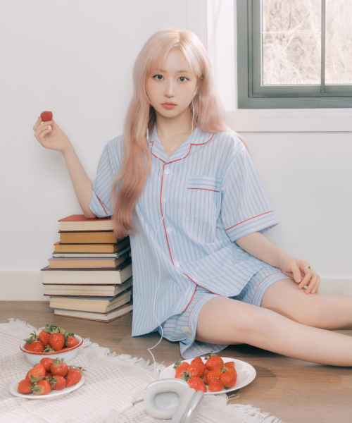 실크핏 웬즈데이 반팔 커플 잠옷 세트