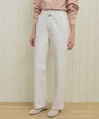 Button Detail Straight Jean - White