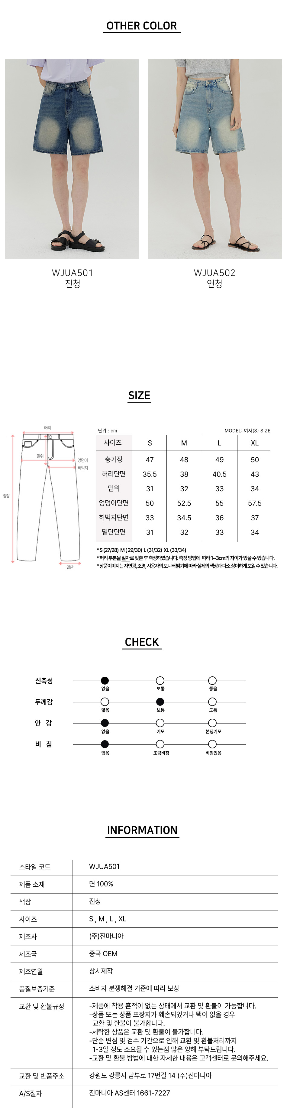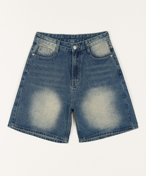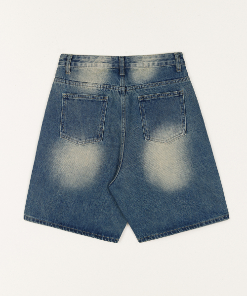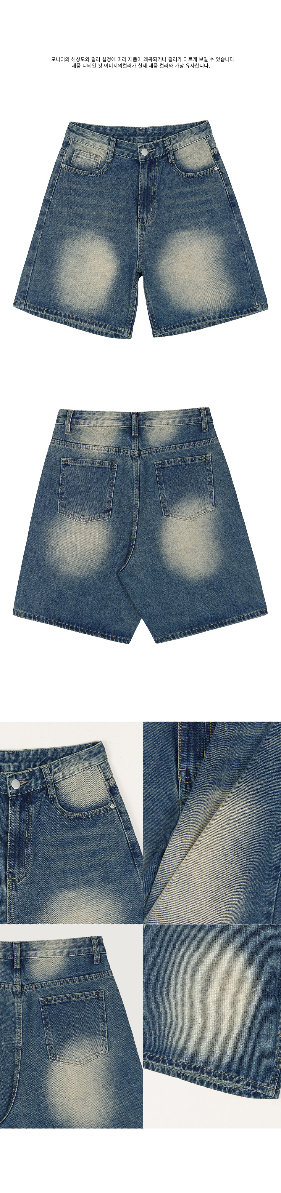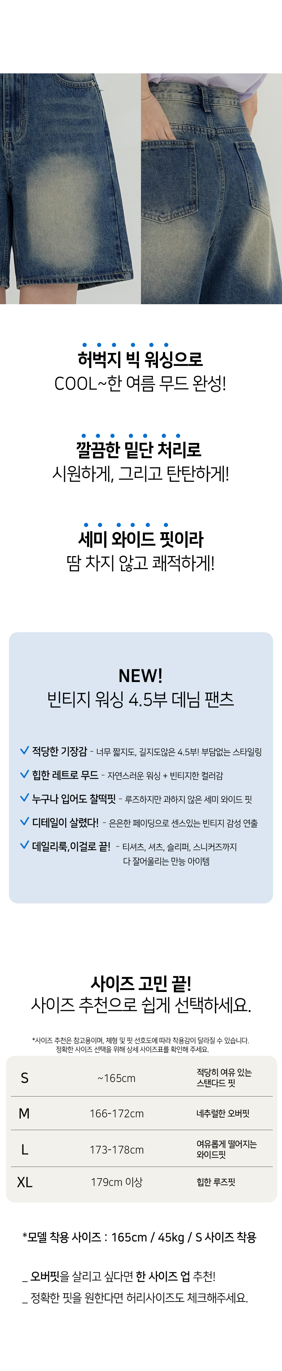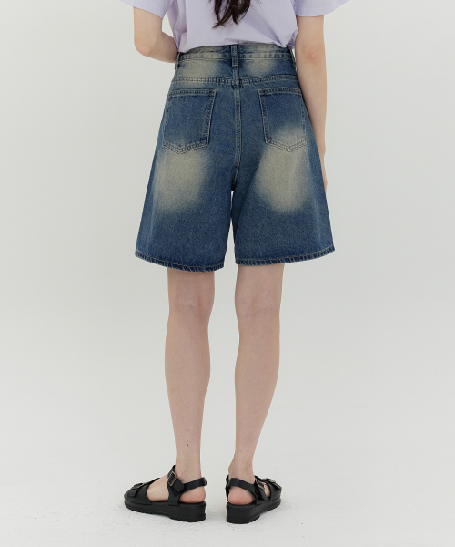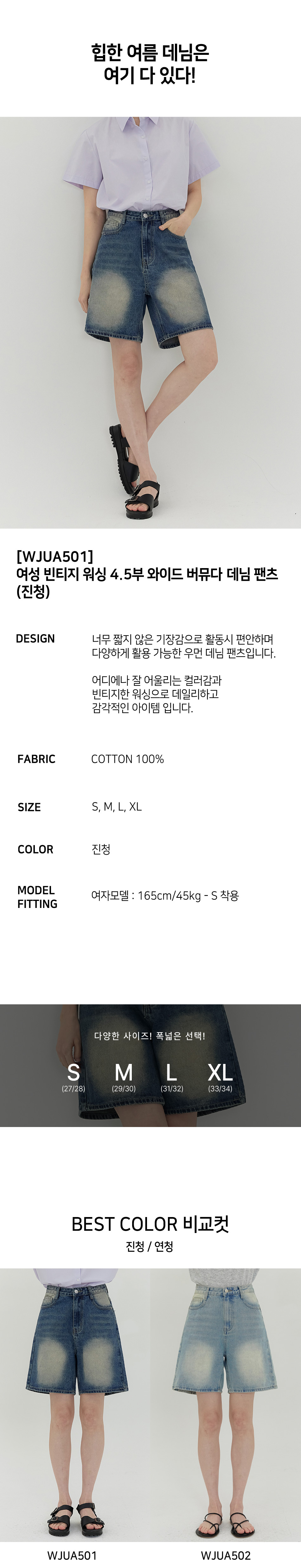 여성 빈티지 워싱 4.5부 와이드 버뮤다 데님 팬츠 (진청)