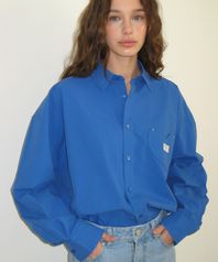 STITCH HEART POCKET OVER FIT SHIRT BLUE