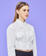 WOMEN 크롭 슬림 긴팔 셔츠 블라우스 [WHITE] 크롭티 긴팔티 ver.