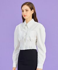 WOMEN 크롭 슬림 퍼프 긴팔 셔츠 [WHITE] 크롭티 긴팔티 PF