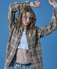 오버사이즈 사계절 브러쉬 체크 셔츠 [BEIGE] KCL.