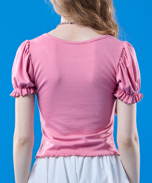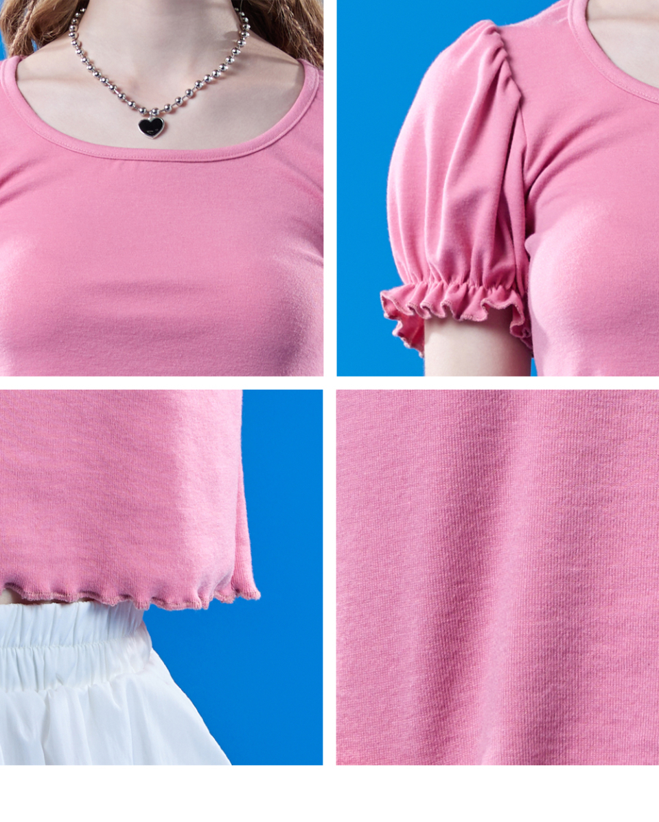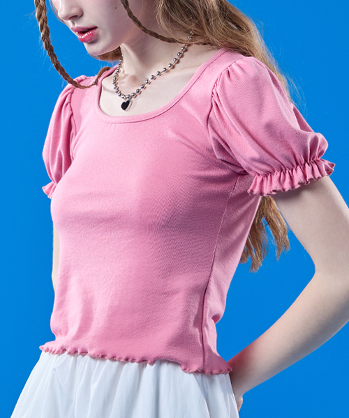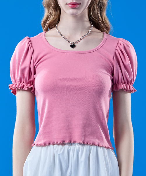 퍼프 프릴 라운드 이너 반팔티 [핑크]