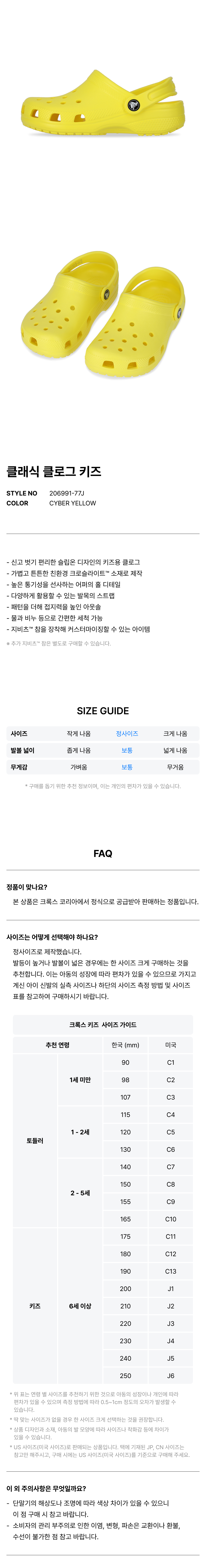 클래식 클로그 키즈 - 사이버 옐로우 / 206991-77J