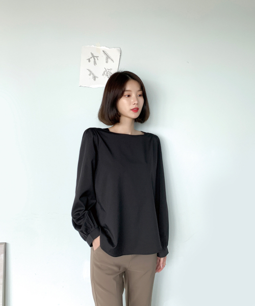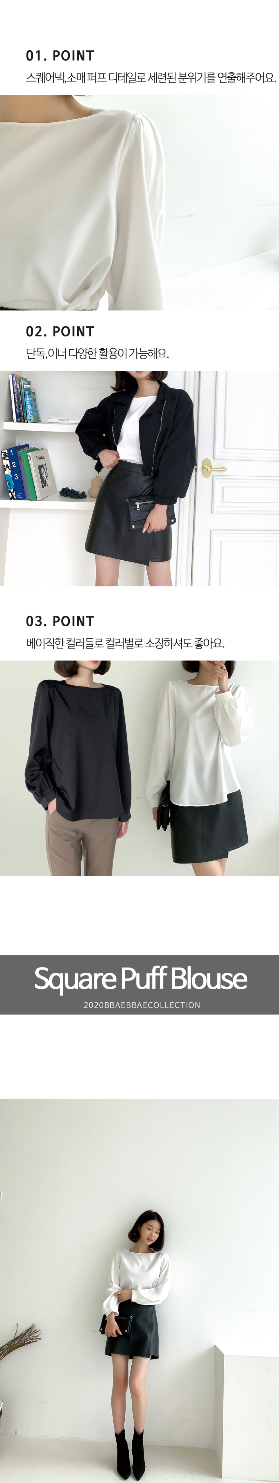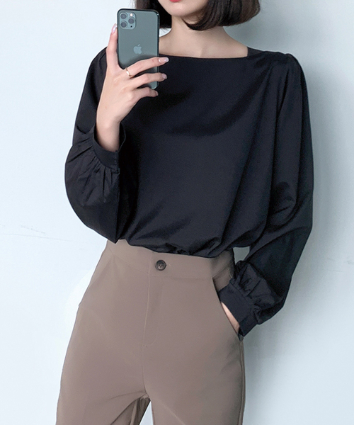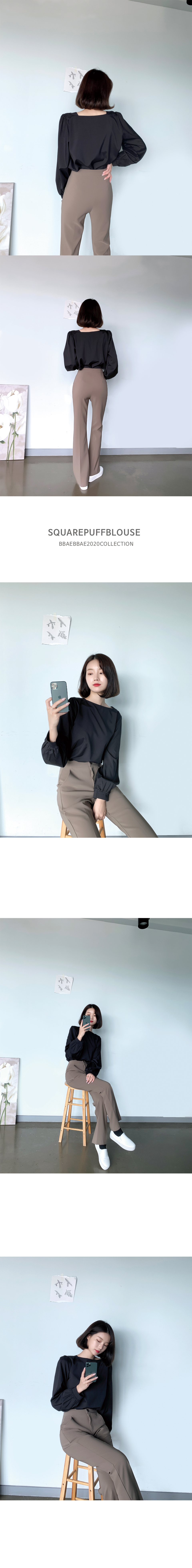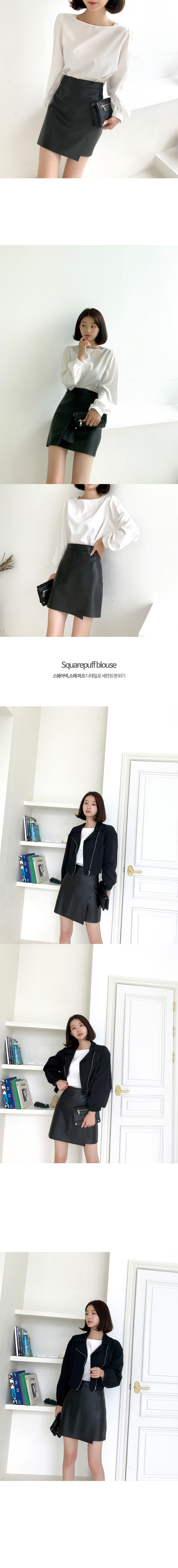 스퀘어넥 퍼프소매 블라우스