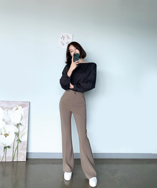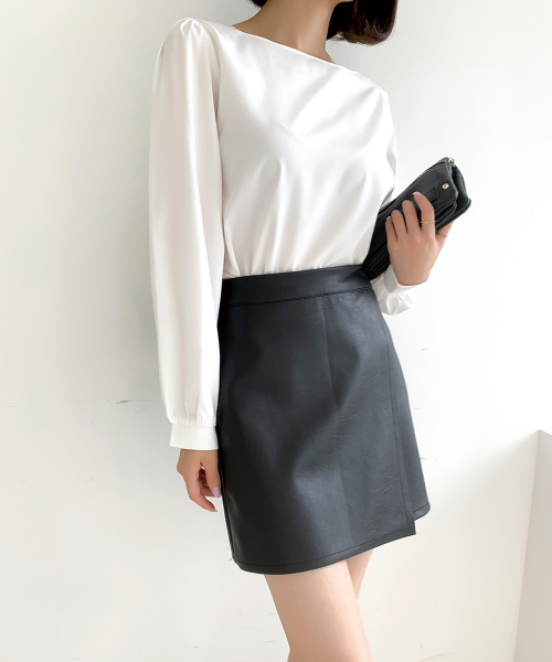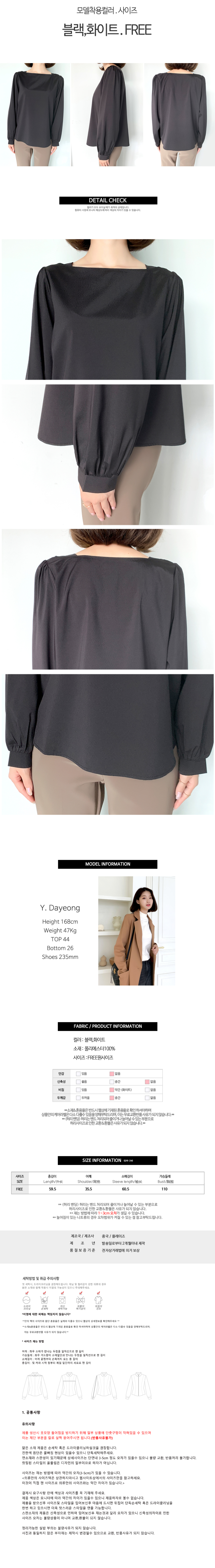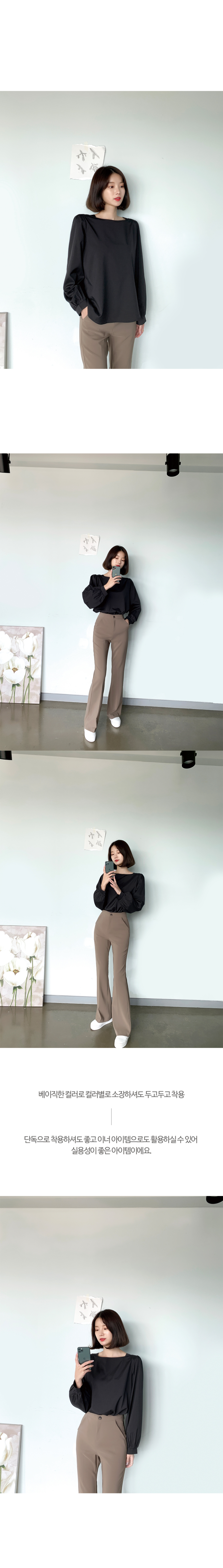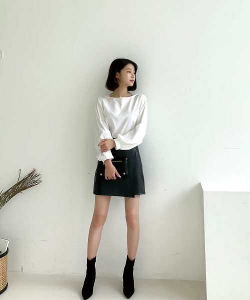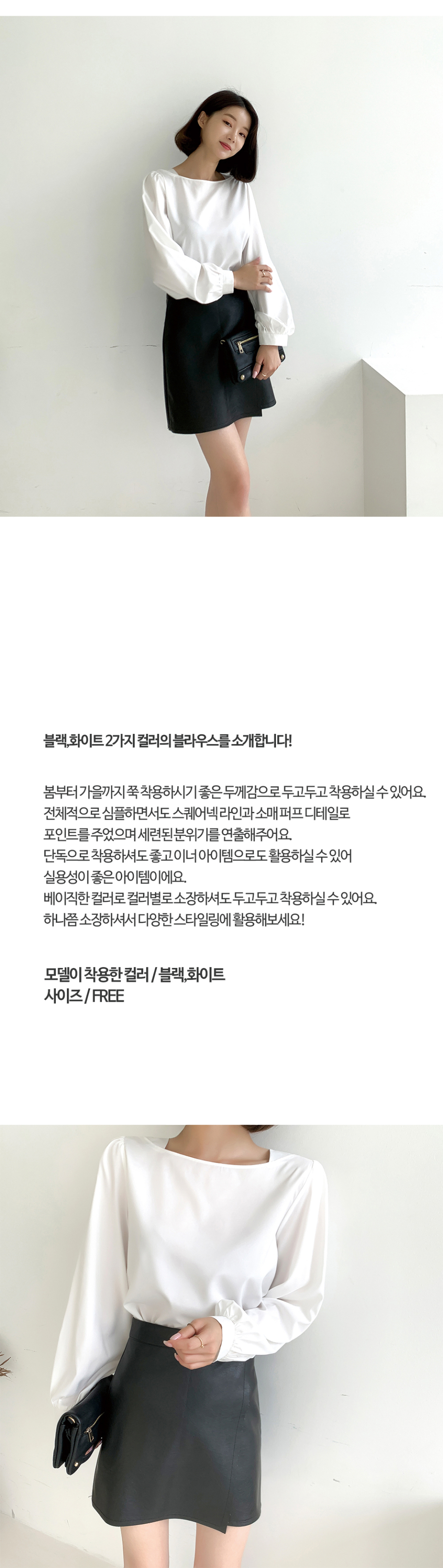 스퀘어넥 퍼프소매 블라우스