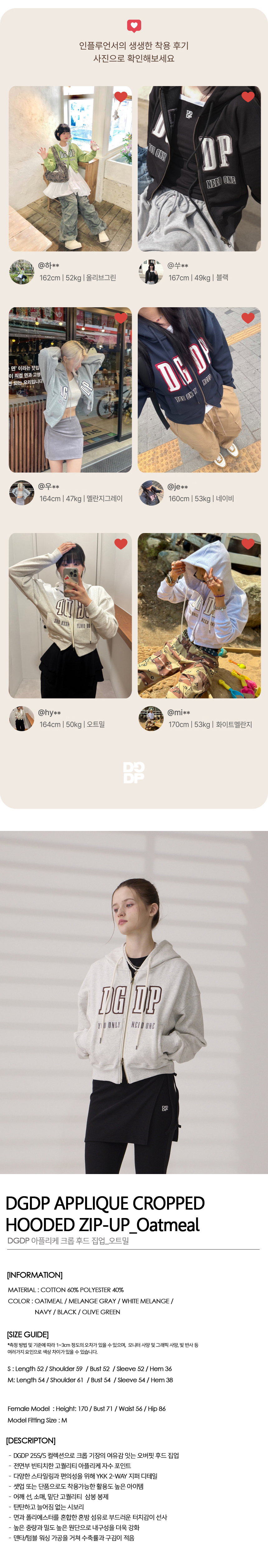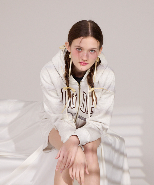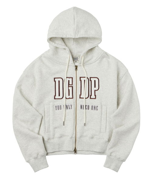 DGDP 아플리케 크롭 후드 집업 오트밀