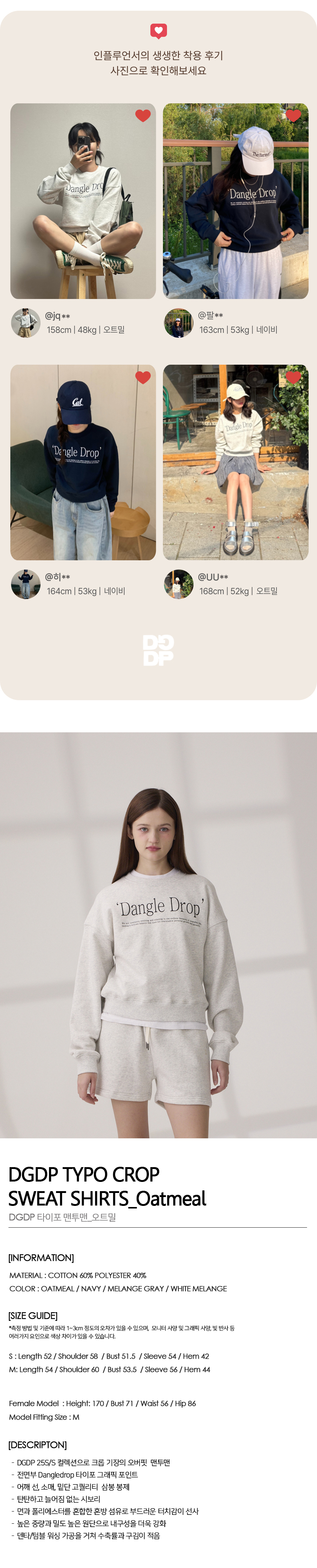 DGDP 레터링 자수 크롭 맨투맨_오트밀
