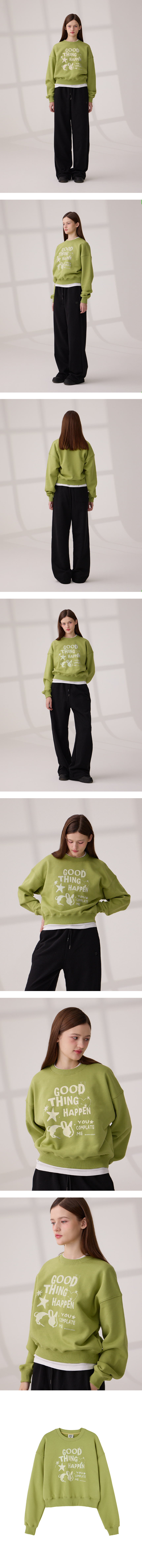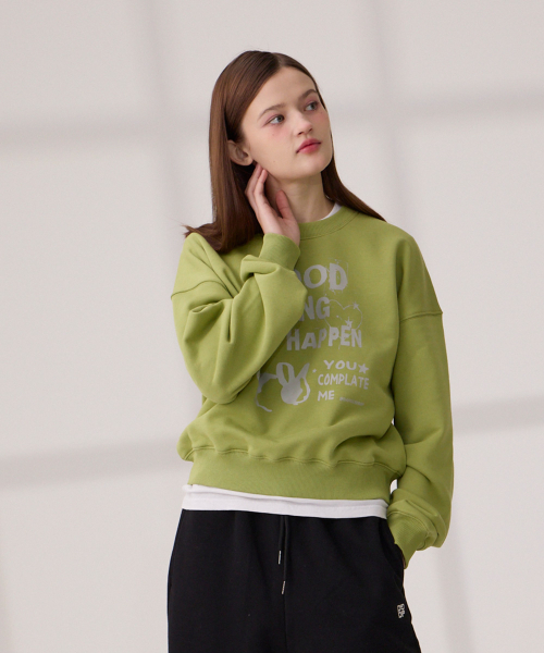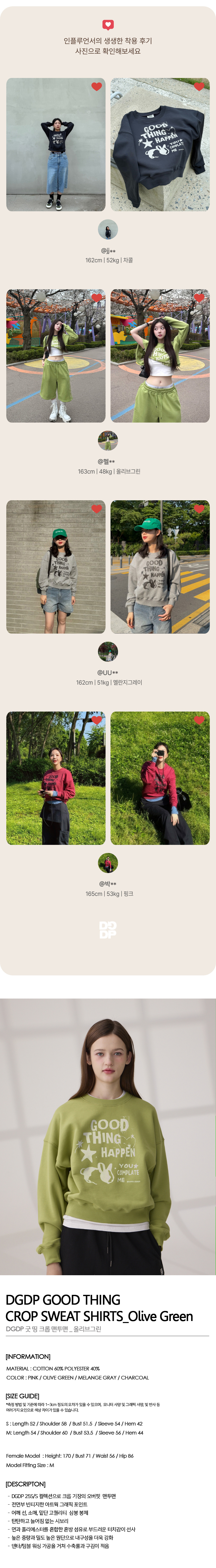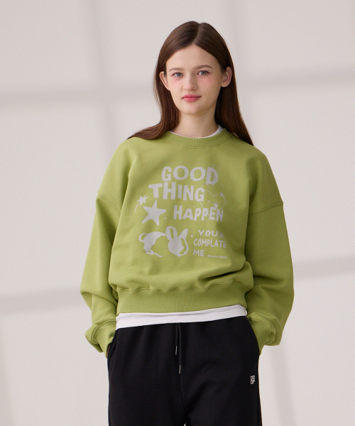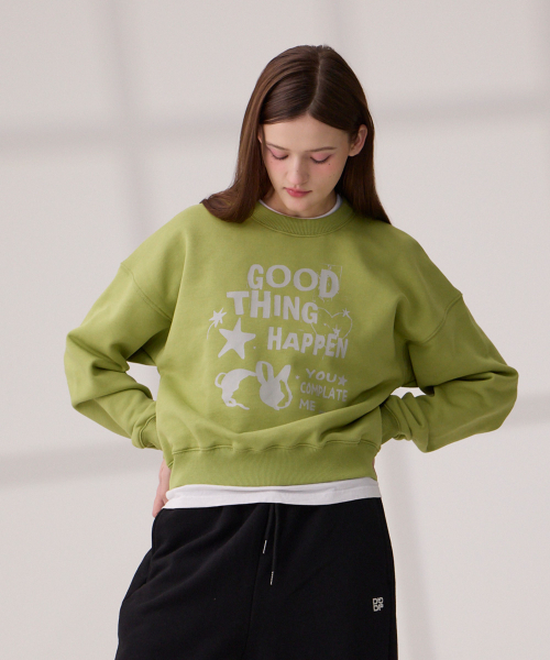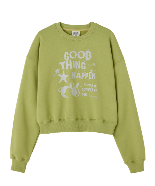DGDP GOOD THING 크롭 맨투맨 올리브그린