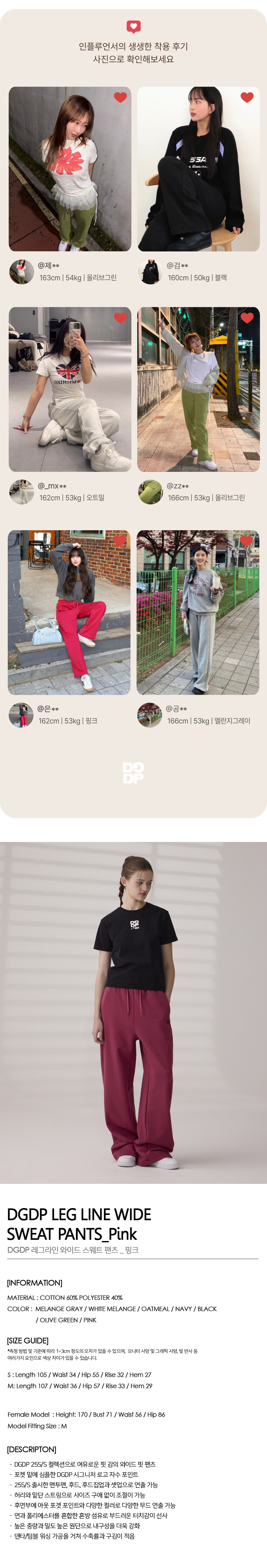 DGDP 레그라인 와이드 스웨트 팬츠 핑크