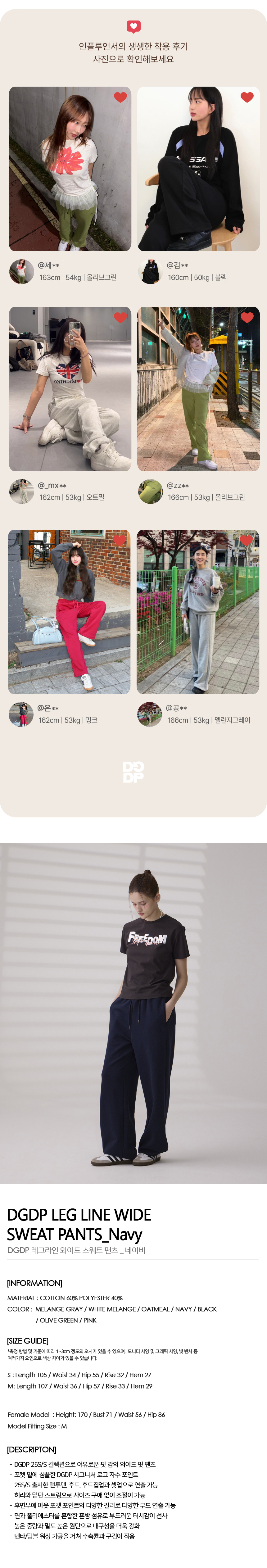 DGDP 레그라인 와이드 스웨트 팬츠 네이비