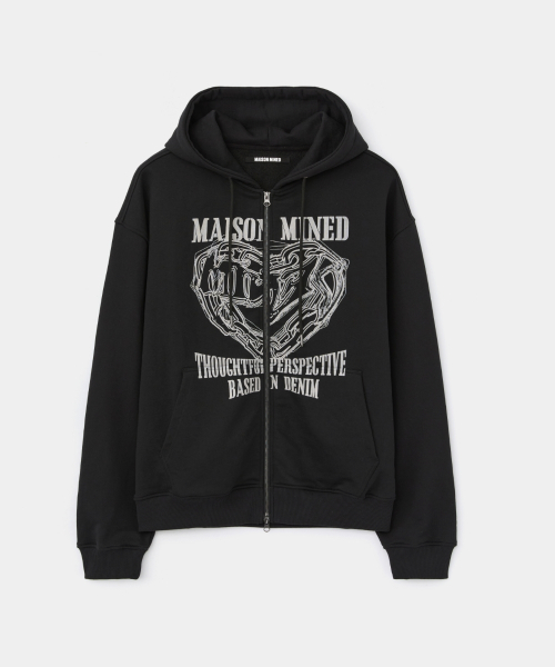 DOODLE HEART HOODIE ZIP UP BLACK