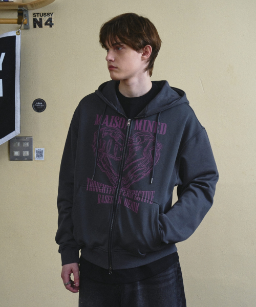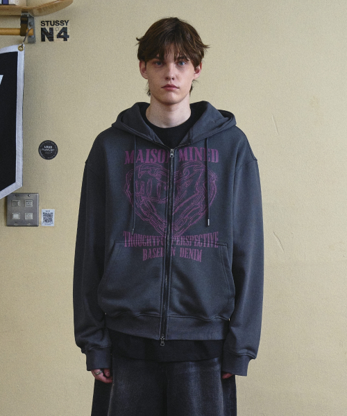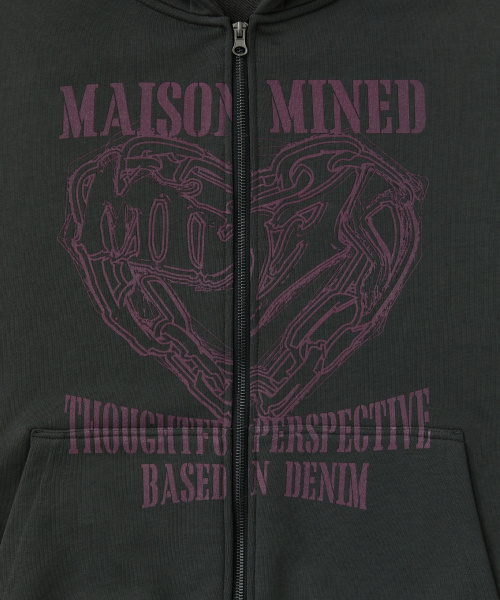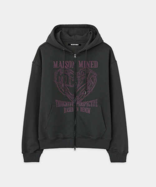 DOODLE HEART HOODIE ZIP UP CHARCOAL