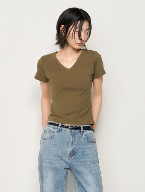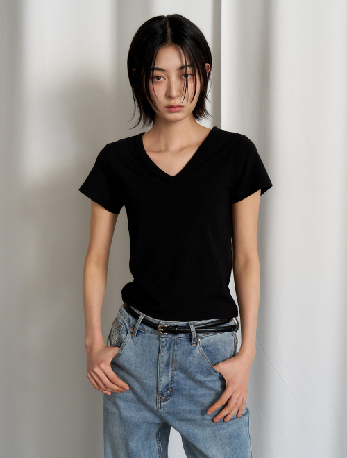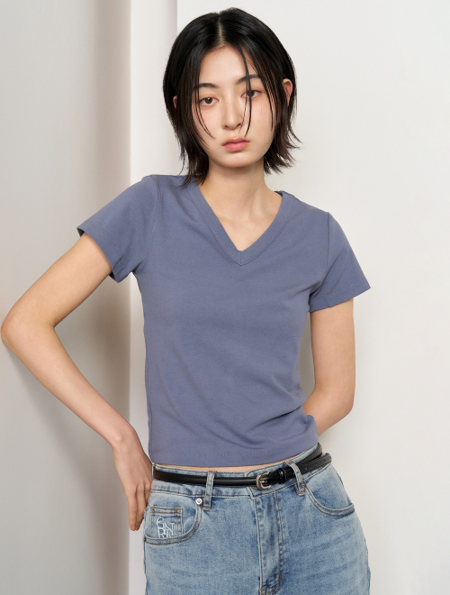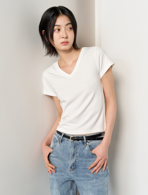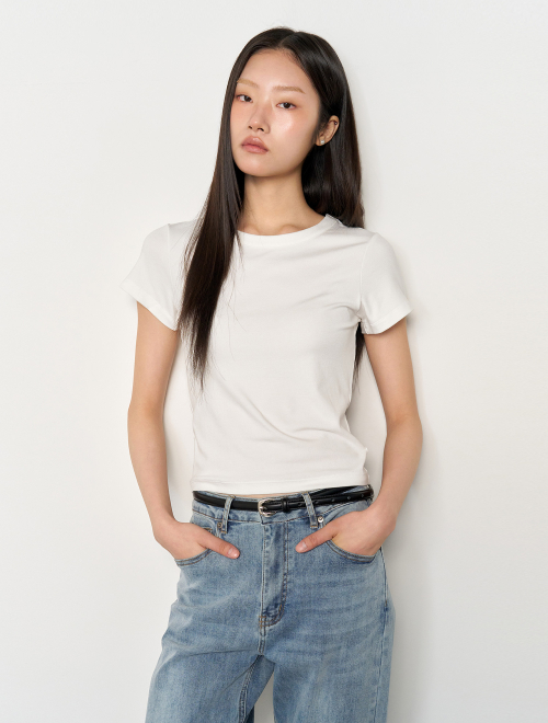 [슈퍼소프텐셀] n드레시 슬림 오프숄더 스퀘어넥 반팔 티셔츠
