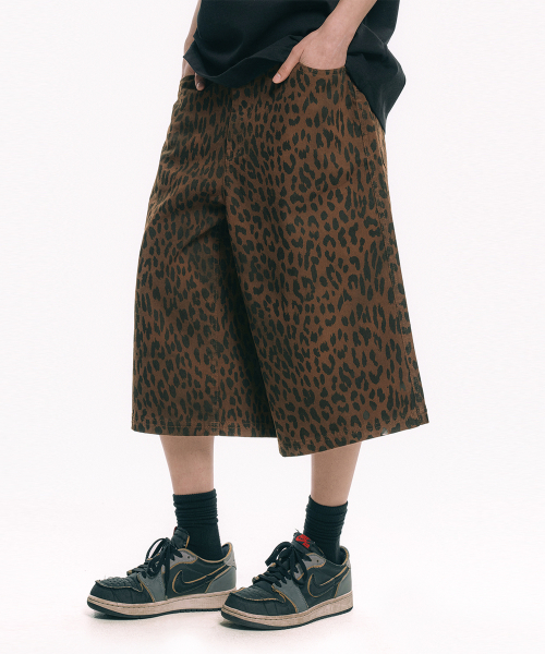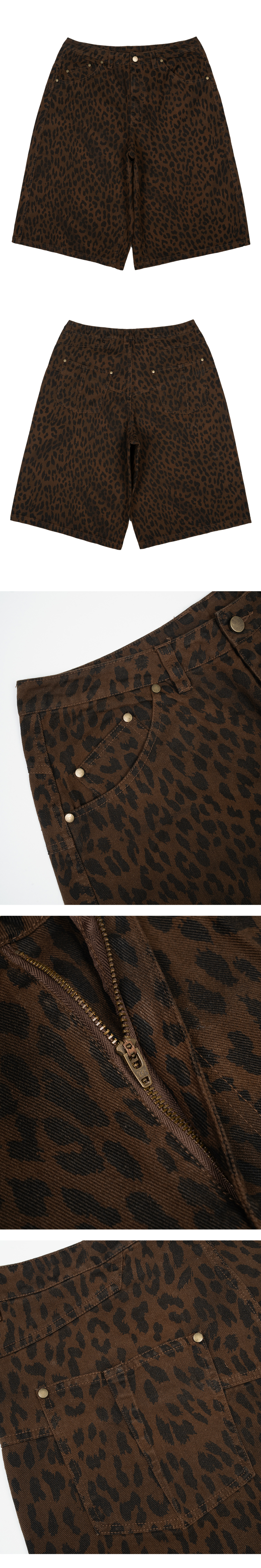 워시드 레오파드 버뮤다 쇼츠 - 브라운