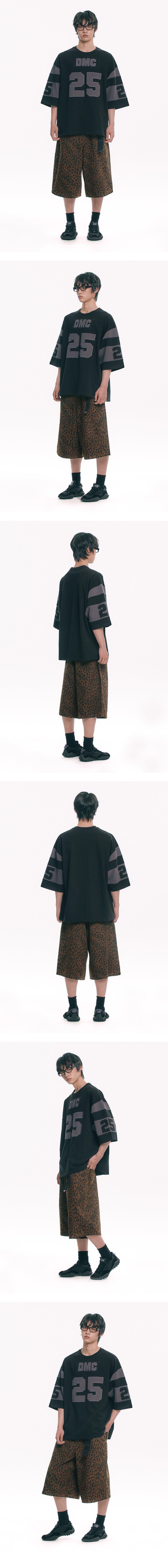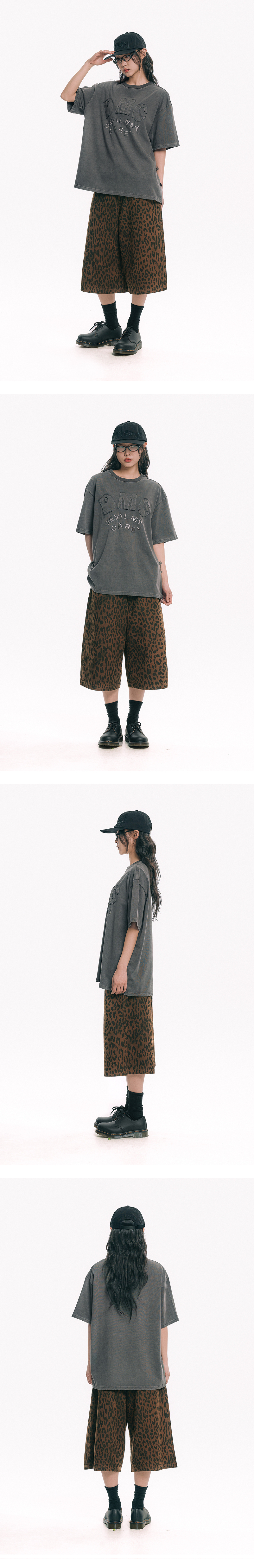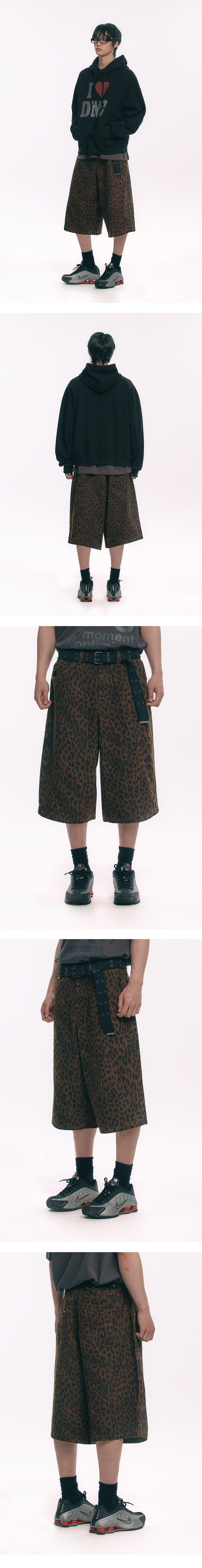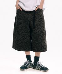워시드 레오파드 버뮤다 쇼츠 - 블랙