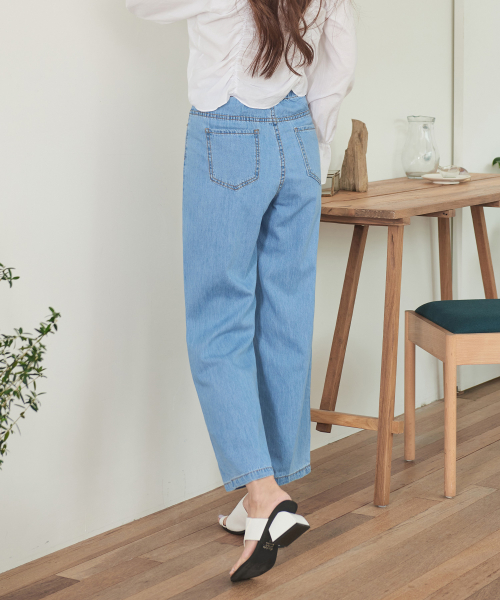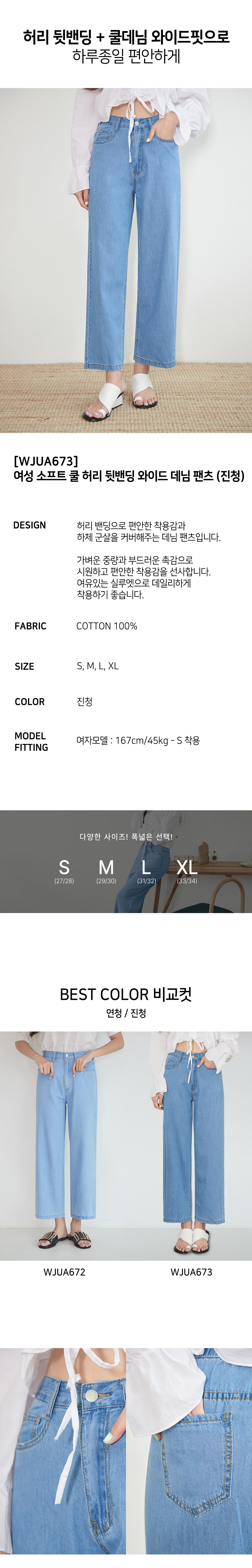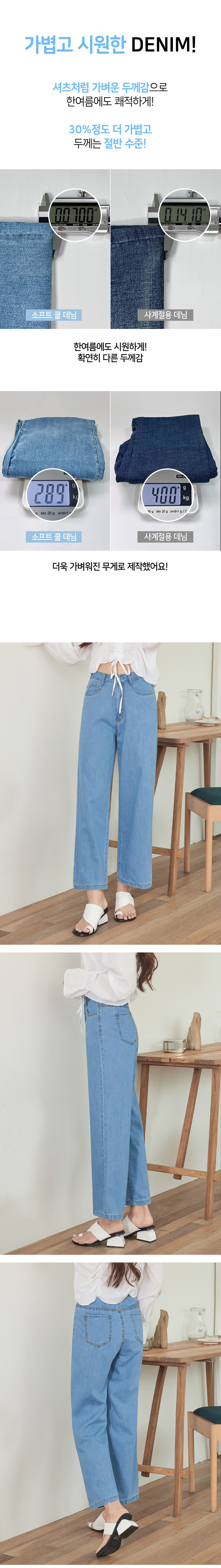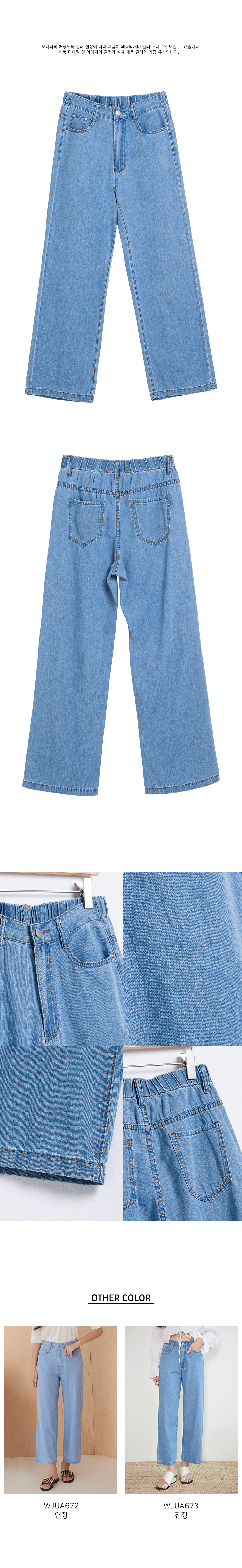 여성 소프트 쿨 허리 뒷밴딩 와이드 데님 팬츠 (진청)