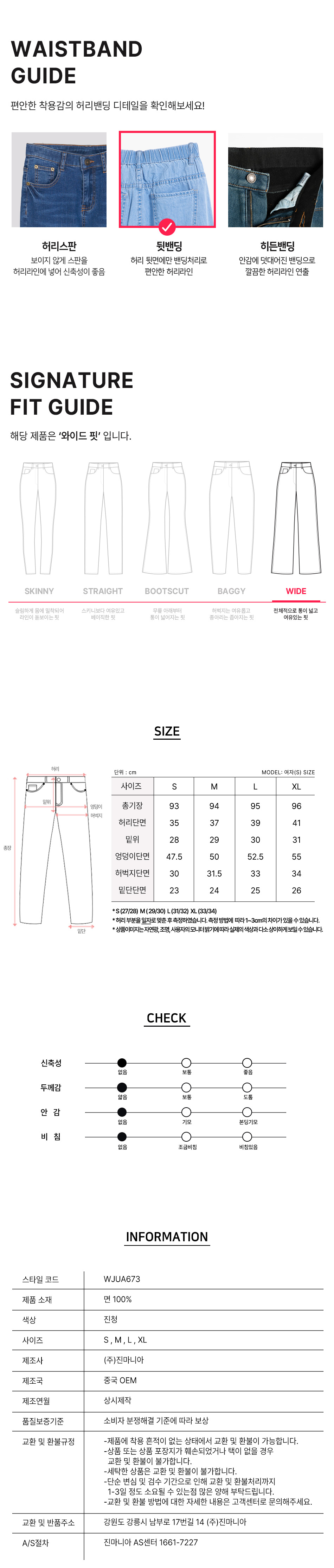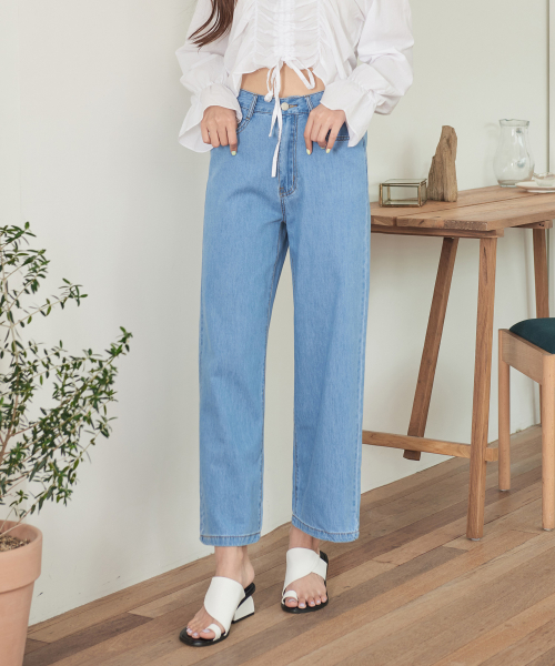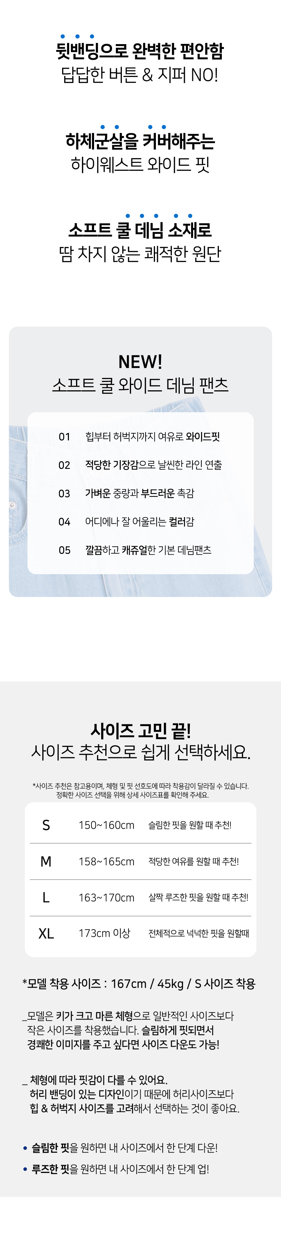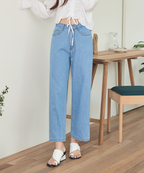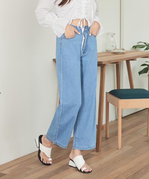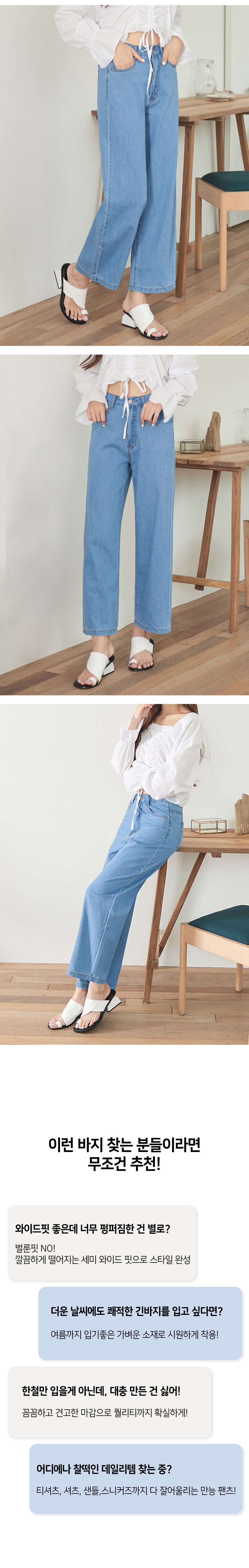 여성 소프트 쿨 허리 뒷밴딩 와이드 데님 팬츠 (진청)