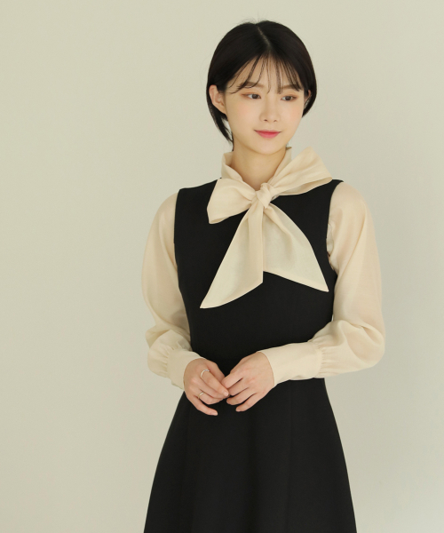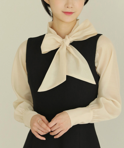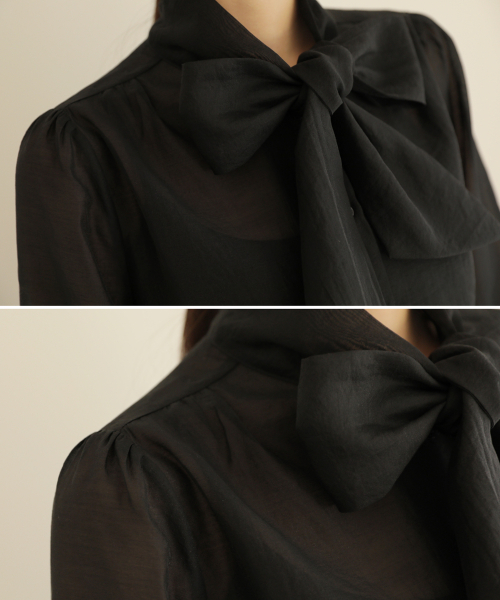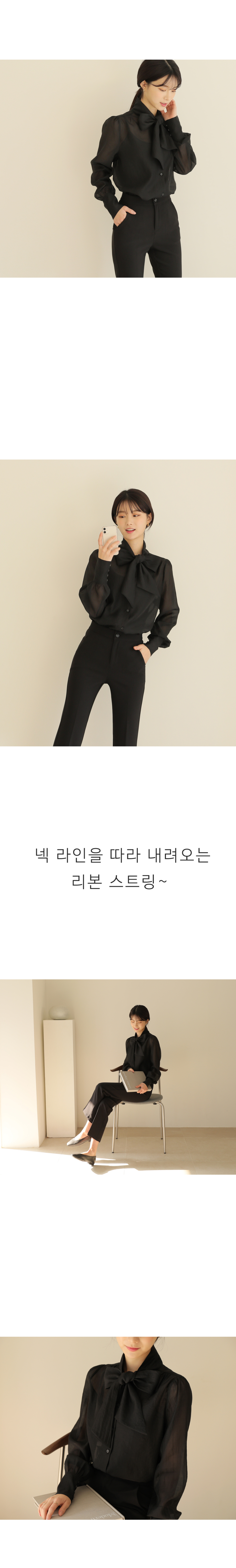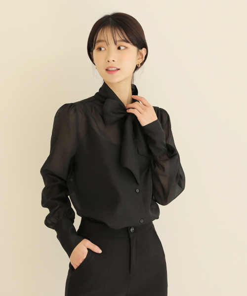 넥리본 시스루 쉬폰 블라우스