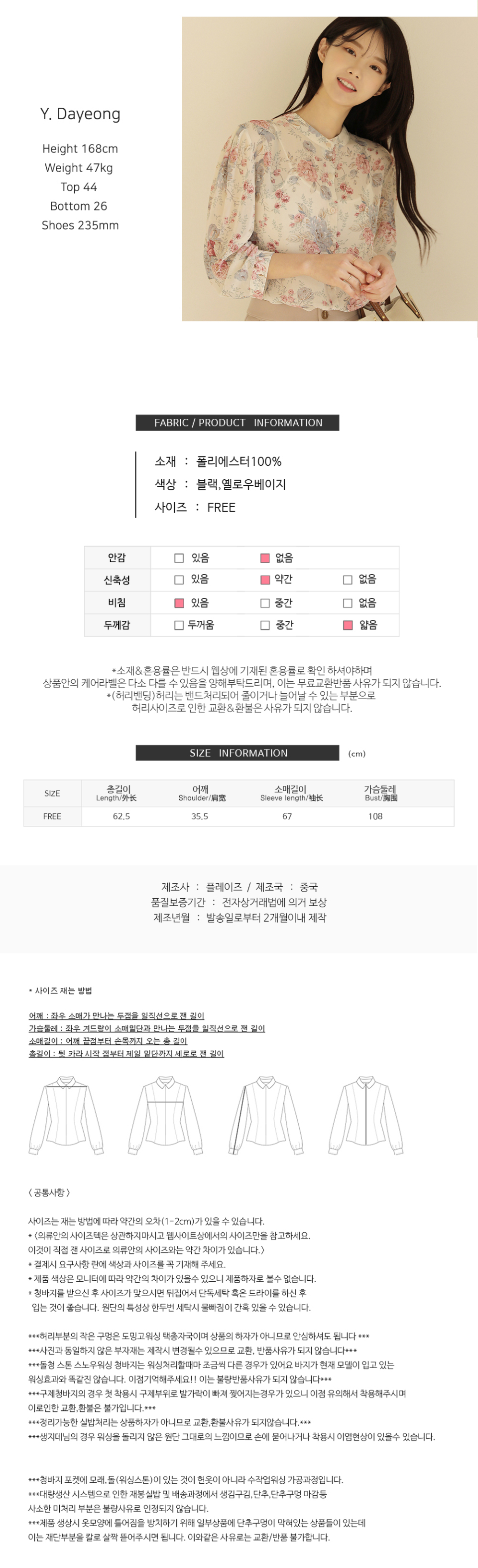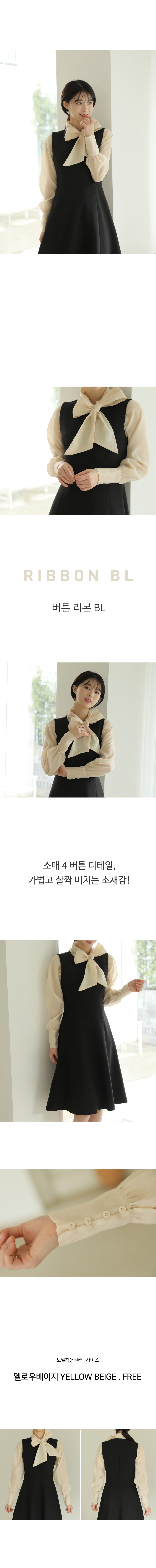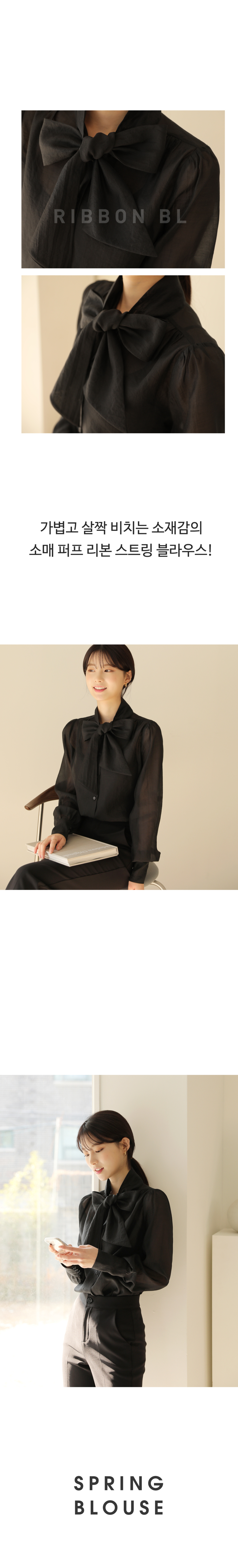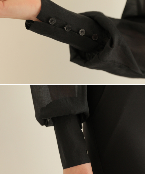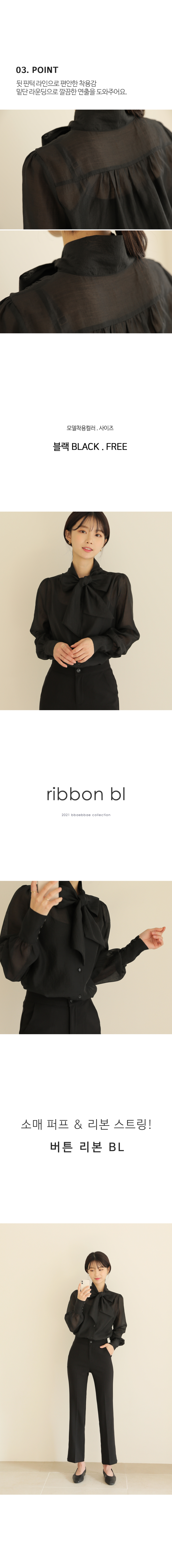 소매버튼 리본 시스루 블라우스