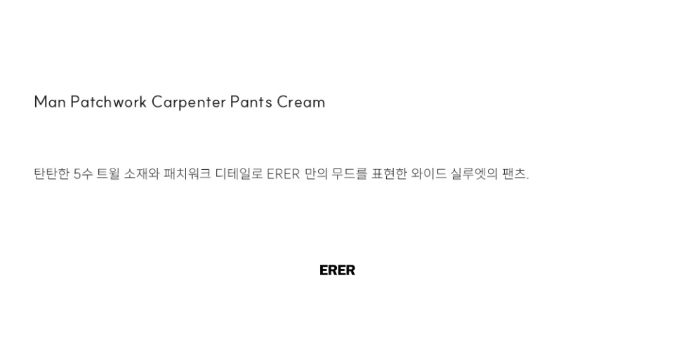 에르에르(ERER)는 삶의 모든 순간에서 당신만의 ER을 찾고 표현할 수 있도록 함께하는 유니섹스 패션 브랜드입니다. 'Find your ER' 슬로건 아래, 우리는 각자의 정체성을 담은 이야기를 디자인으로 풀어내며, 포용성과 다양성을 바탕으로 경계를 허물고 나만의 색으로 채워갑니다.