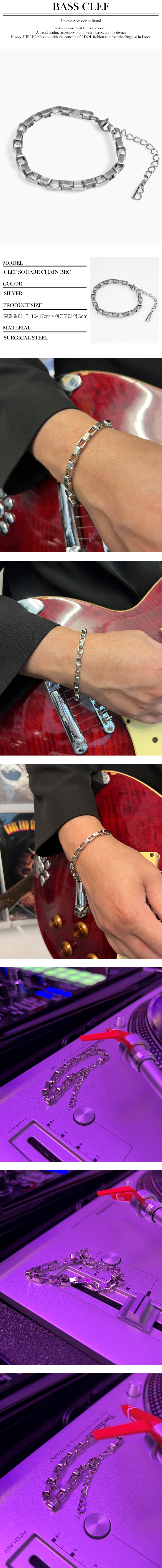 남자 체인 팔찌 써지컬스틸 CLEF SQUARE CHAIN BRC