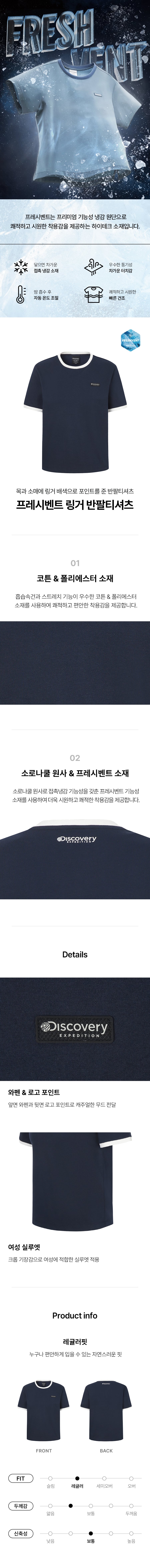 프레시벤트 여성 링거 반팔티셔츠 (D/NAVY)
