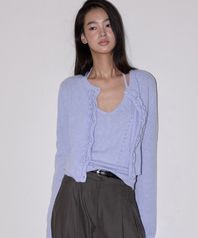 러플 울 니트 가디건 세트 라벤더 블루
