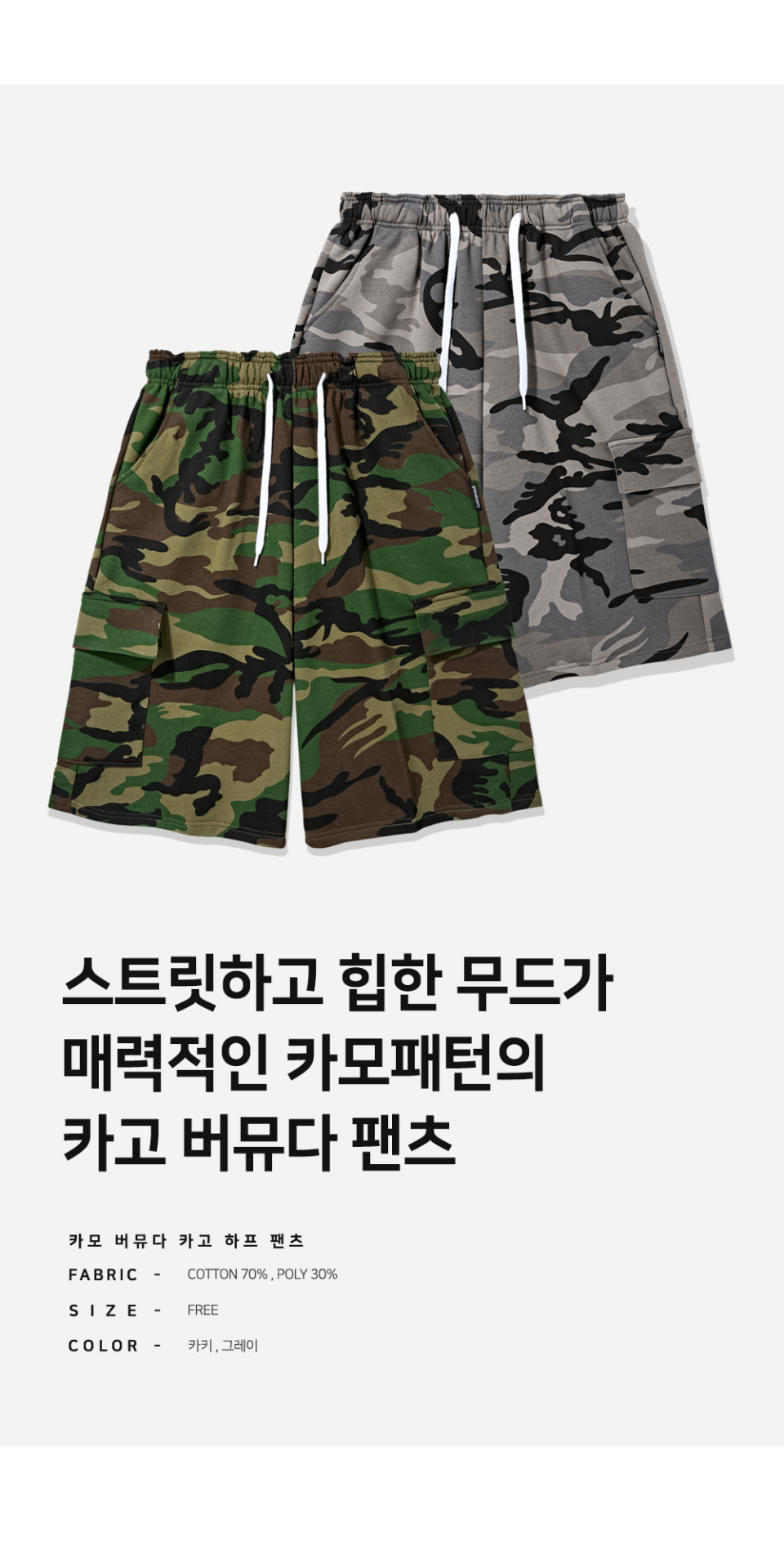 카모플라쥬 버뮤다 카고 하프 팬츠 (그레이)