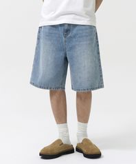 워시드 하프 데님 팬츠 (LIGHT BLUE)