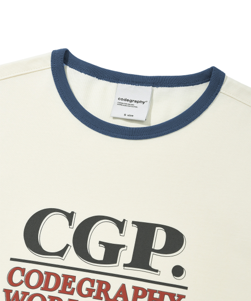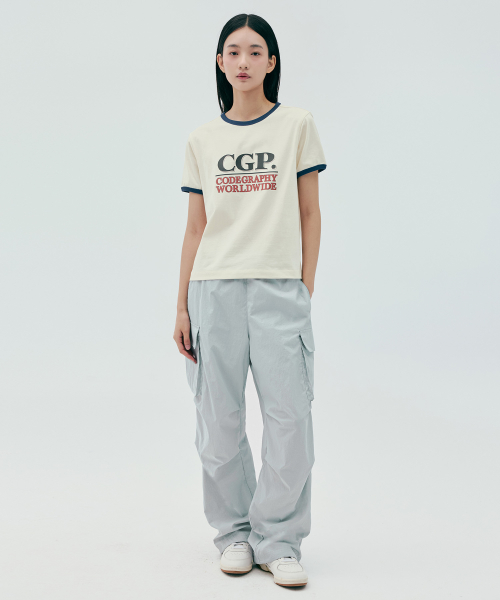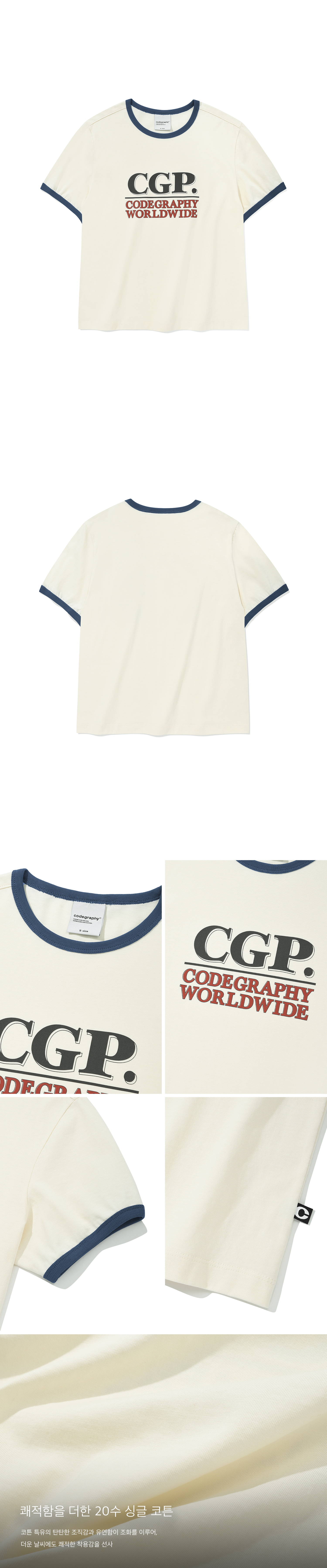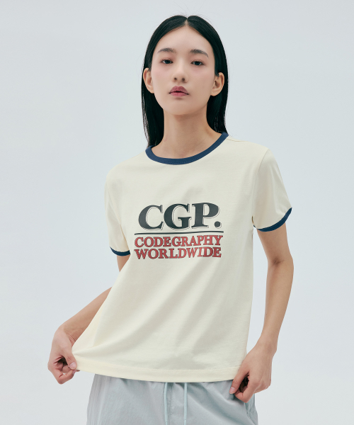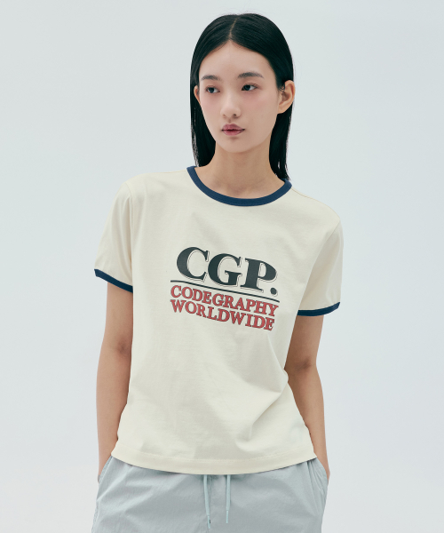 (우먼) 스퀘어 로고 링거 반소매 티셔츠_크림