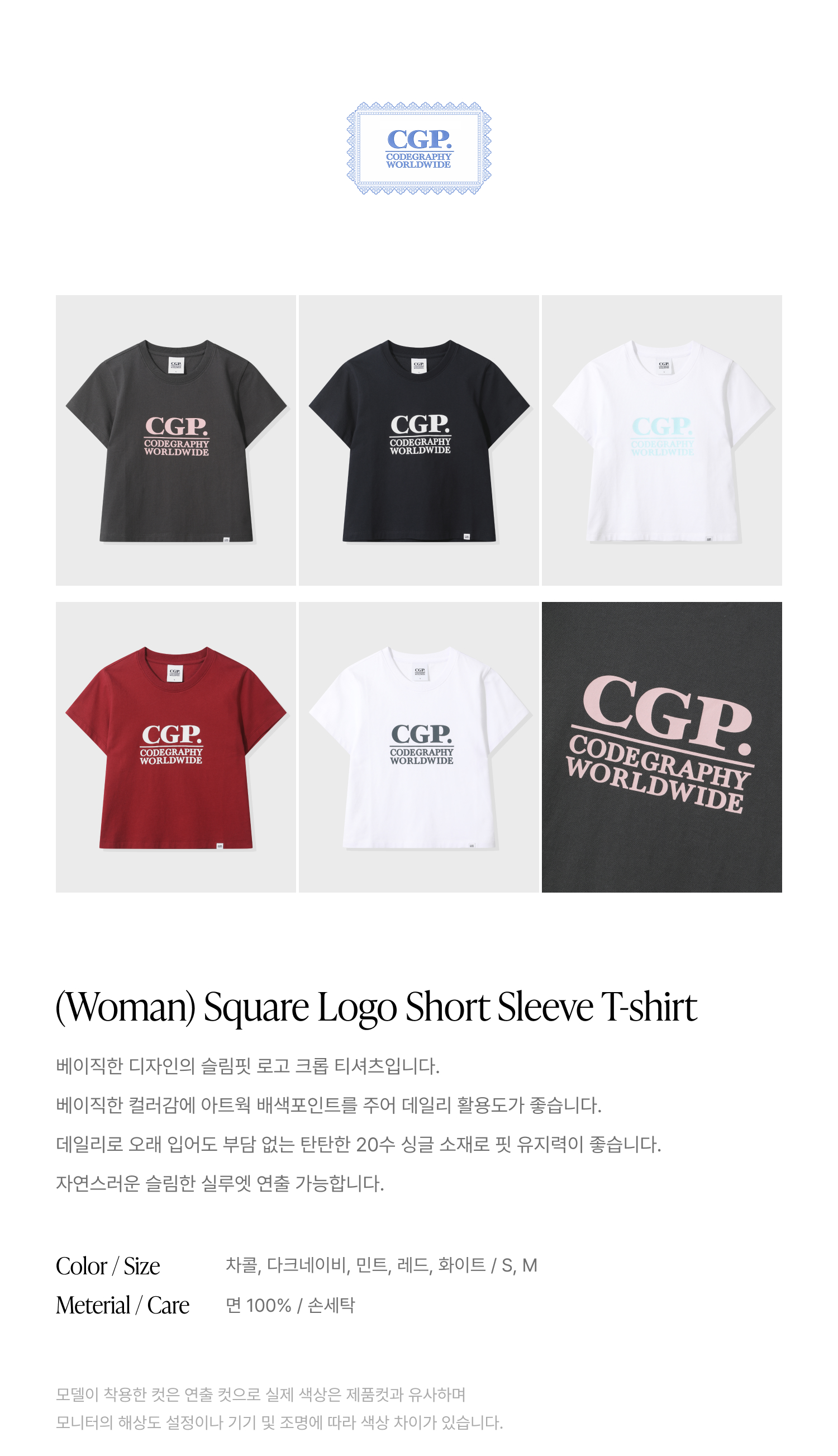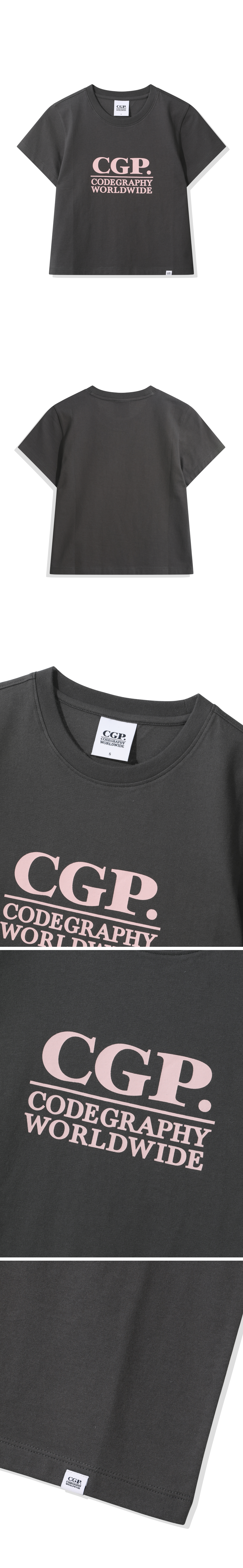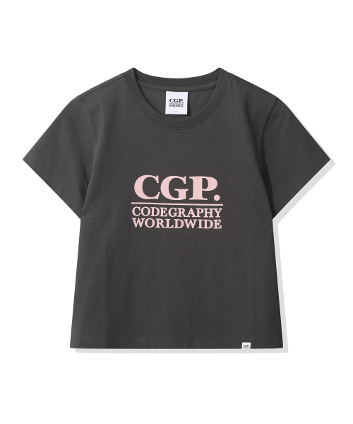 (우먼) 스퀘어 로고 반소매 티셔츠_차콜