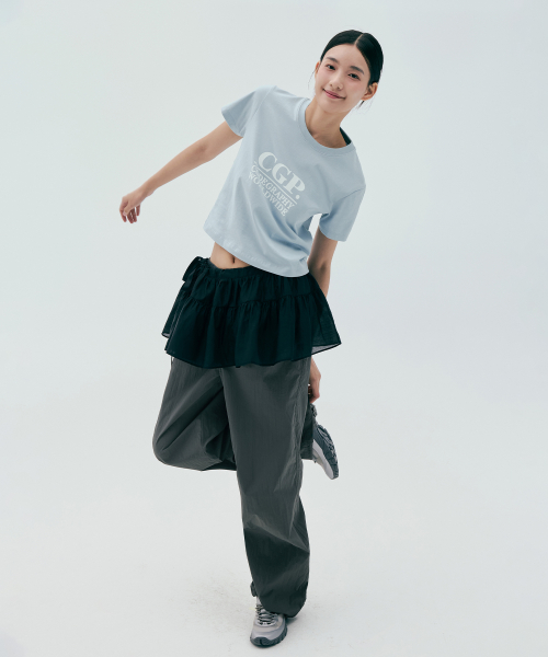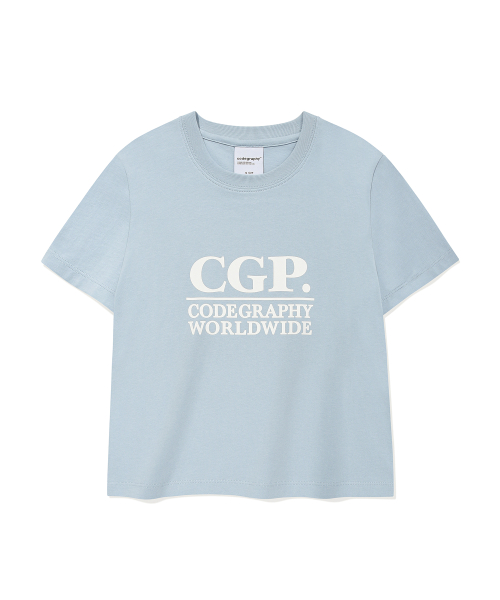 (우먼) 스퀘어 로고 반소매 티셔츠_스카이블루