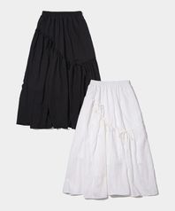레이스 셔링 리본 코튼 밴딩 롱 캉캉 스커트 _2COLOR