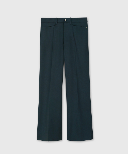빈티지한 분위기의 80년대 벨 바텀 팬츠를 현대적으로 재해석한 트라우저 입니다. 탄탄한 밀도의 울 혼방 패브릭은 다리 라인을 따라 슬림하고 간결한 시그니처 플레어 실루엣을 강조합니다. 콘초 스터드로 마감된 슬래시 포켓과 후면의 버튼 플랩포켓, 벨트라인 타일레 블랙 라벨이 장식되어 있습니다.