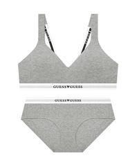 코튼 백업 노와이어 브라 팬티 세트 - 멜란지그레이