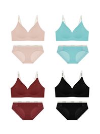 캐주얼 솔리드 프리컷 브라 팬티 세트