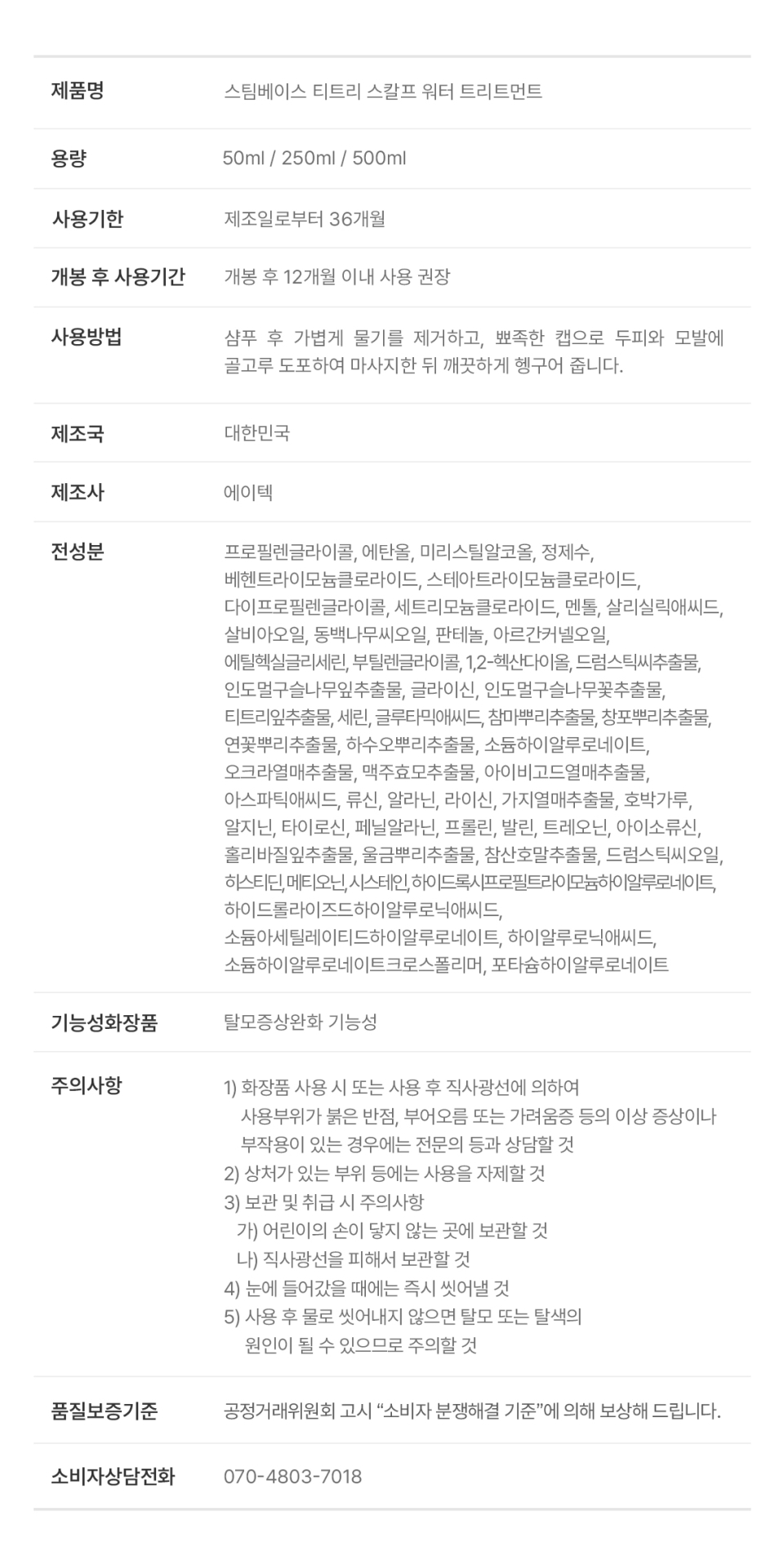 티트리 트리트먼트 250ml + 스케일러 250ml