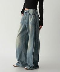 사이드 핀턱 워싱 벌룬 와이드 데님 팬츠 4 Color [ANBD_6005]