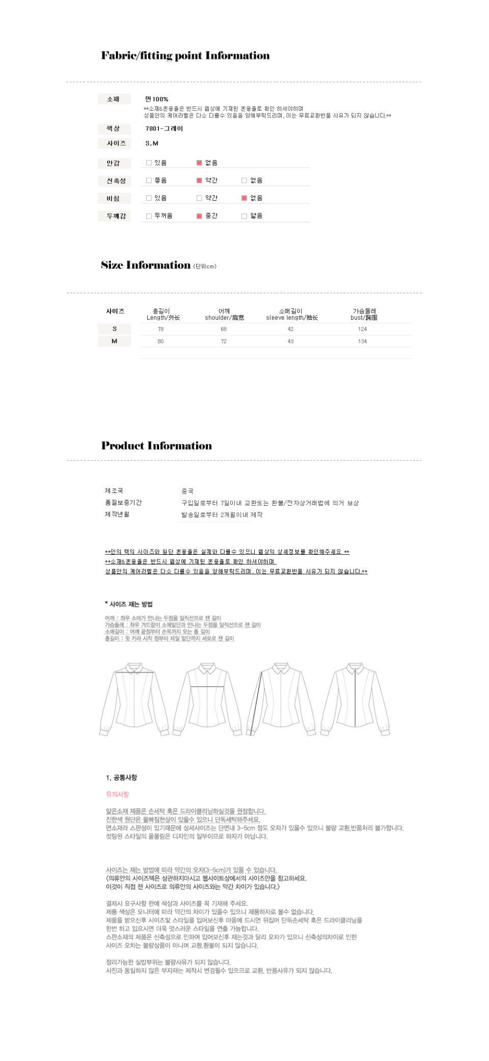 카라넥 긴팔 모던심플 베이직 셔츠 남방