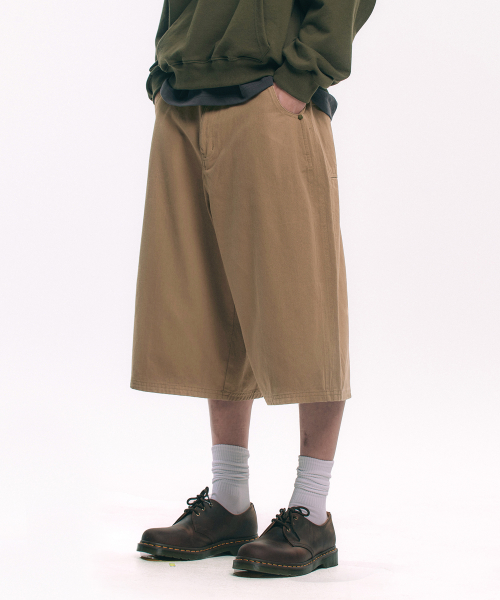 백로고 카펜터 인디고 데님 버뮤다팬츠 - 크림
