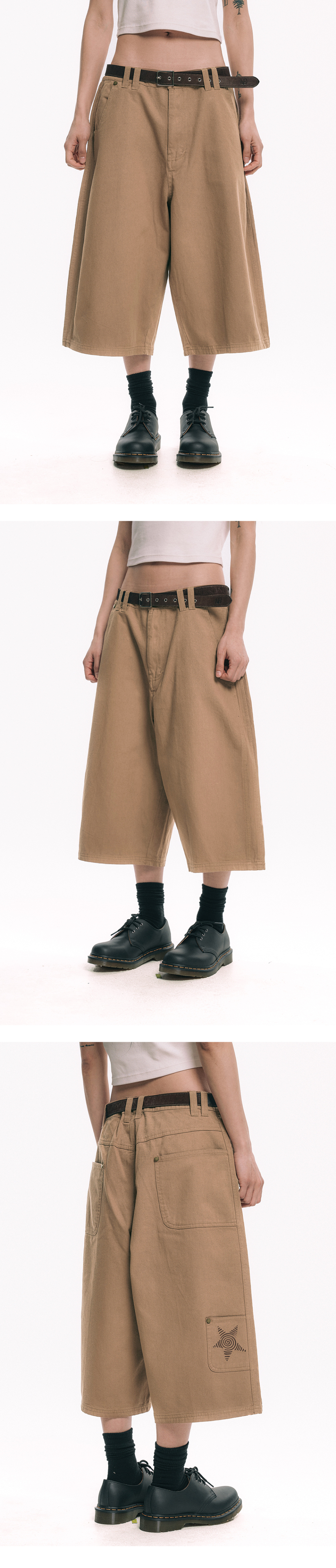 아플리케 포켓 코튼 버뮤다팬츠 - 베이지